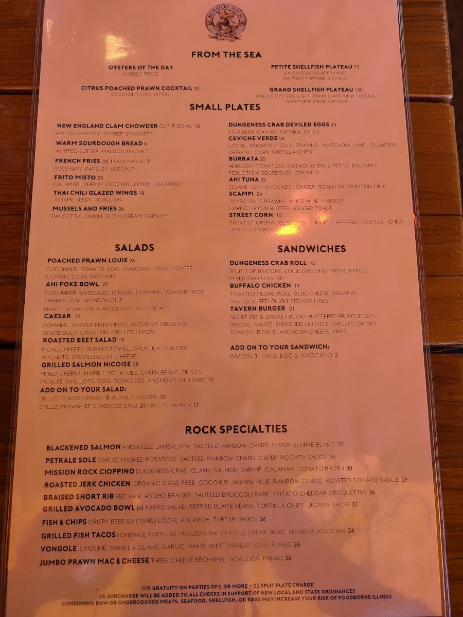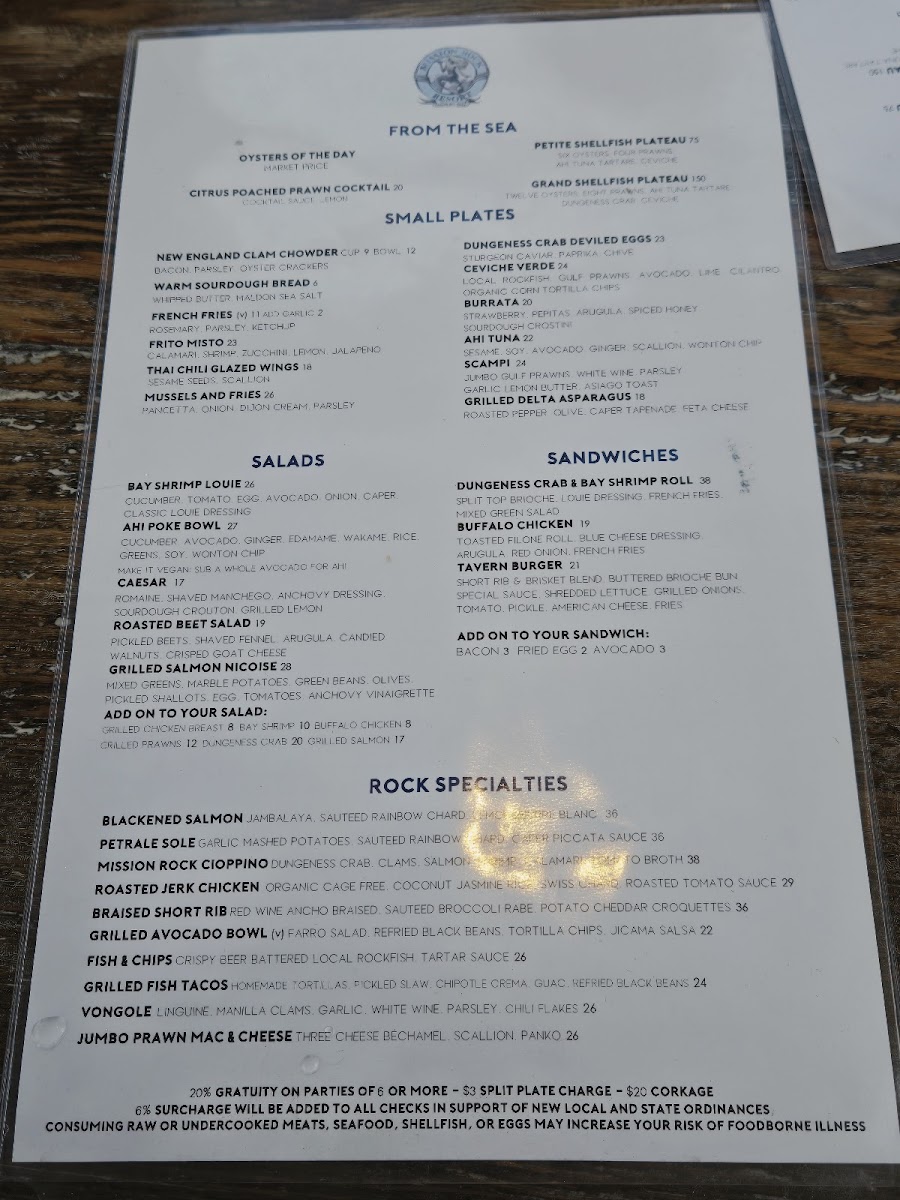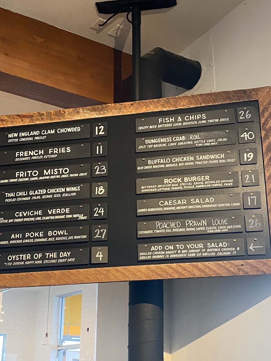 The menu showcases a delightful range of dishes that celebrate the ocean’s bounty. Start your meal with the Raw Bar offerings, where the Petite Shellfish Plateau ($65.00) awaits, featuring an enticing selection of oysters, clams, prawns, and ceviche verde. Or elevate your experience with the Grand Shellfish Plateau ($135.00) for a luxurious assortment of six oysters, Dungeness crab, and more. For those who crave heartier options, the Pan Seared Petrale Sole ($28.00) with mashed potatoes and lemon caper beurre blanc delivers a perfectly balanced dish that melts in your mouth, while the Jambalaya ($16.00) brims with shrimp, mussels, and clams, inviting a medley of flavors that dance on your palate.